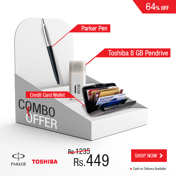 Combo of Parker Ball Pen + Toshiba PenDrive + Credit Card Wallet at Rs. 449