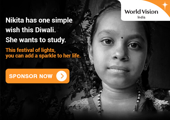 | | For some, Diwali is a festival of fond memories, fireworks, sweets and diyas. For others, it is anything but that. You can help make dreams come true in the lives of children such as Ajay, and support them as they pursue their aspirations. | | | | For just Rs. 1000 every month, you can make a difference in a child's life through World Vision's Child Sponsorship program, and help turn their hopes and dreams into reality. | | | | We can ensure that they will be well-educated, healthy and well-nourished. They will be made aware of their basic rights, participate in their personal development, be valued and cared for, and be accepted in society with dignity – just the way we are. Let’s make Diwali special for them too. | | |  | | When you sponsor a Child, you receive |  | | |  | An opportunity to visit the child |