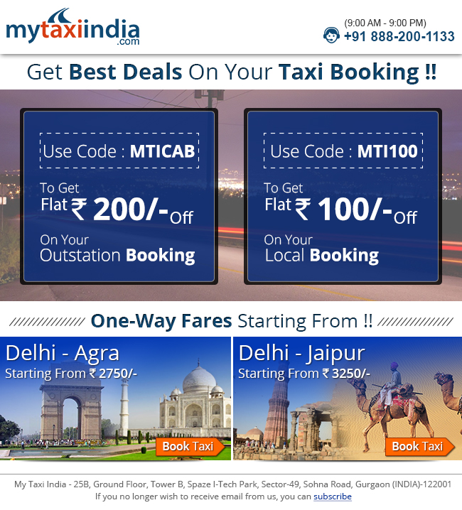 Flat Rs 200/- OFF on outstation taxi booking Use Code MTICAB