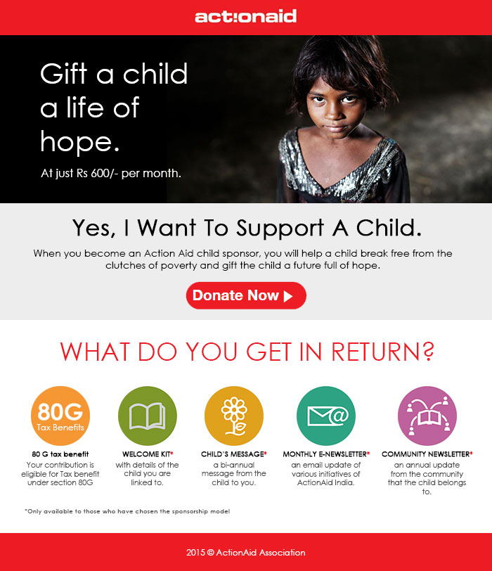At just Rs.600/-p.m. you can gift a child hope.